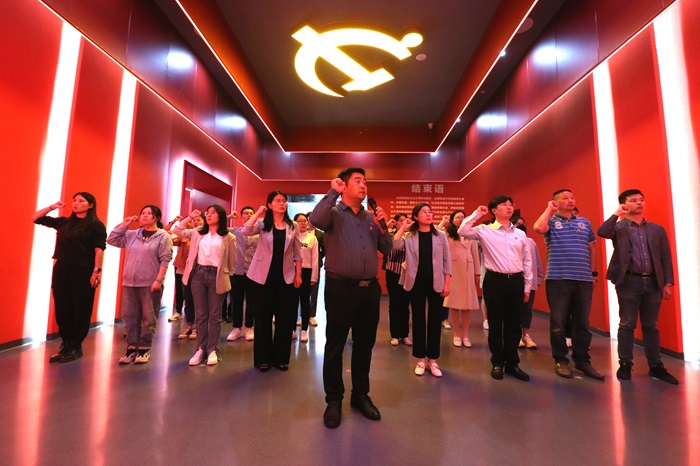 参观结束后,全体党员在宣誓厅现场重温了入党誓词。